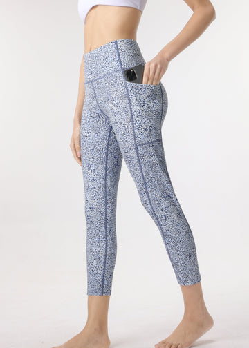 Flower Petals Pattern Print Cropped Yoga Pants With Pocket