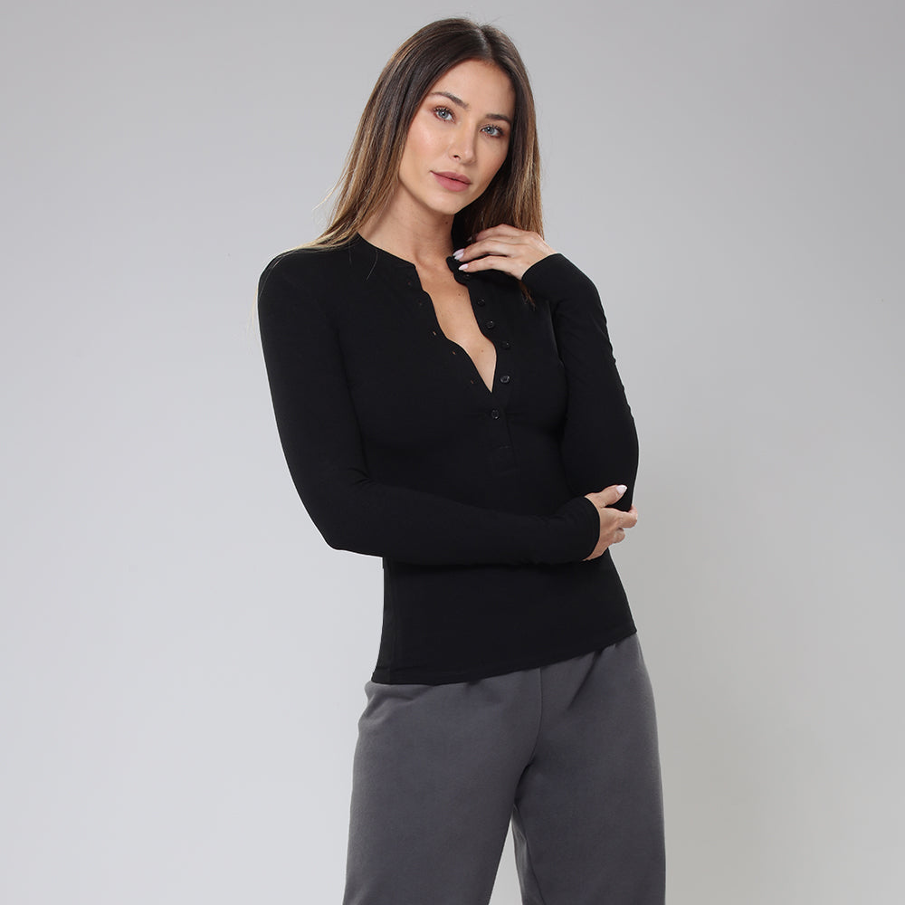 Bodygo Half-Button Long Sleeve - Black