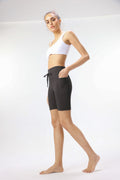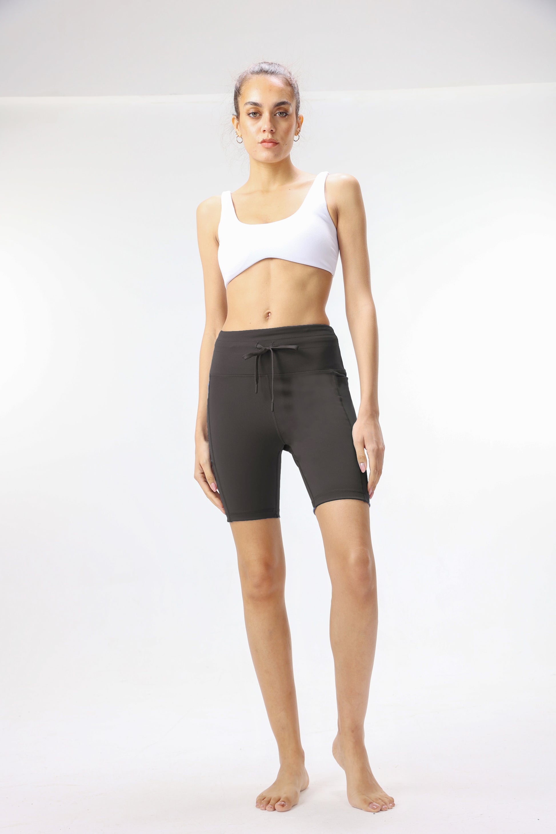 High Waist Sport Yoga Shorts with Side Pocket - Black