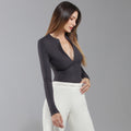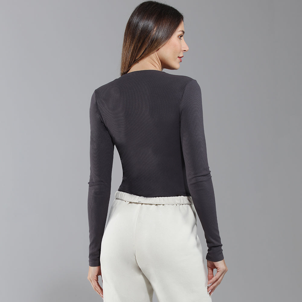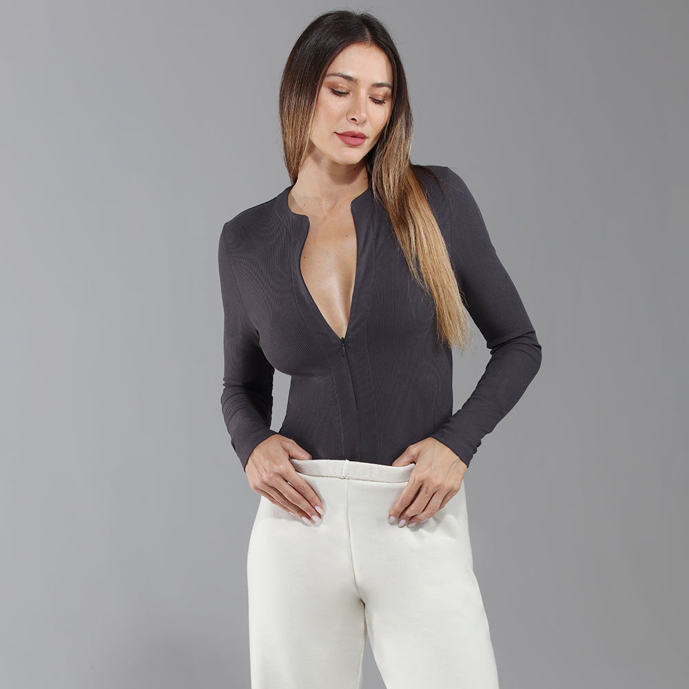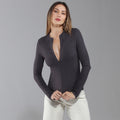 Ribbed Zip-Front Long Sleeve Shirt - Charcoal