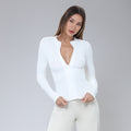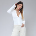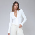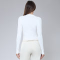 Ribbed Zip-Front Long Sleeve Shirt - White