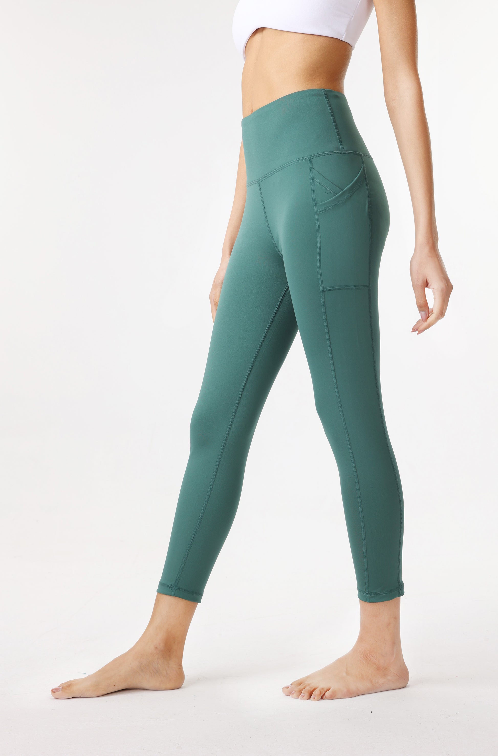 Women's High-Waisted Yoga Pants With Side Pockets - kelp